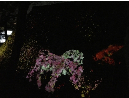 この卵型の光だけでなく、他にも石垣を背景に花柄の動物や、