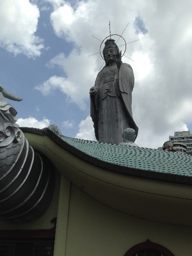 亀の上に乗った少し変わった観音像です。高さは観音像だけで18mあり、